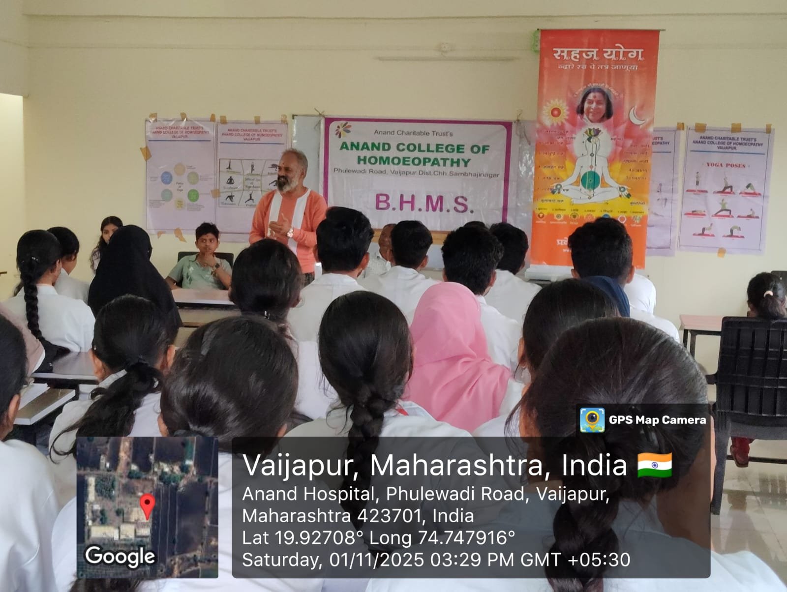 An enlightening lecture on Meditation for Mental Health was conducted at Anand College of Homoeopathy by the Sahajyog team.